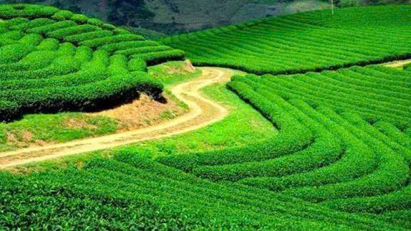 Đồi chè Cầu Đất Đà Lạt buổi sáng có mây
