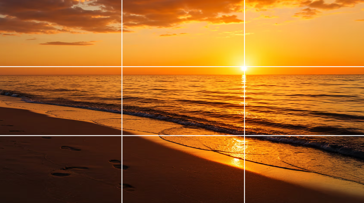 Thay vì đặt chủ thể ngay chính giữa ảnh, hãy thử đặt người, công trình hoặc cảnh vật vào một trong các điểm giao của khung lưới. Cách bố trí này giúp bức ảnh trở nên tự nhiên, cân đối và thu hút ánh nhìn hơn, đặc biệt khi chụp phong cảnh hoặc các địa điểm du lịch nổi tiếng.