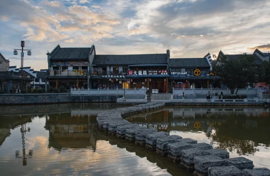 Cách Nam Ninh không quá xa, Thái Bình Cổ Trấn lại mang một vẻ đẹp hoàn toàn khác với khung cảnh cổ kính và trầm mặc. Những con đường lát đá, dãy nhà cổ mái ngói cùng những chiếc đèn lồng đỏ treo trước hiên nhà tạo nên không gian mang đậm phong cách cổ trấn Trung Hoa. Dạo bước trong khu phố cổ, du khách dễ dàng bắt gặp những góc nhỏ rất thơ mộng như cây cầu đá bắc qua dòng nước, những quán trà nhỏ ven sông hay các con ngõ yên bình phủ màu thời gian.