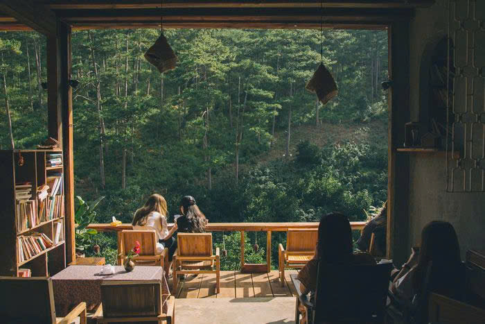 Thưởng thức cà phê view thung lũng rừng thông tại Đà Lạt