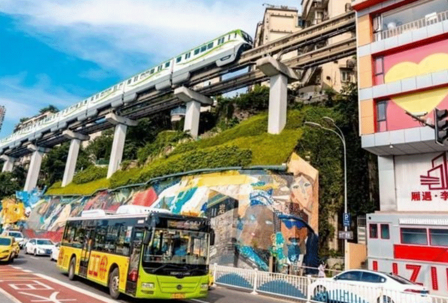 Một ví dụ nổi tiếng là ga tàu điện Lý Tử Ba thuộc hệ thống đường sắt đô thị của Trùng Khánh, nơi đoàn tàu chạy xuyên qua một tòa nhà chung cư. Hình ảnh này đã trở thành biểu tượng độc đáo khiến Trùng Khánh thu hút rất nhiều du khách và người yêu thích khám phá đô thị.