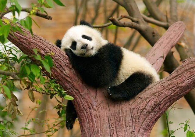 Khoảnh khắc gấu trúc nằm ngủ trên cành cây