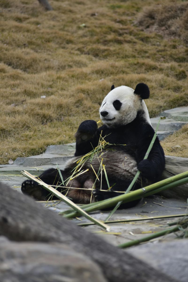 Gấu trúc ôm bó tre gặm nhấm dần