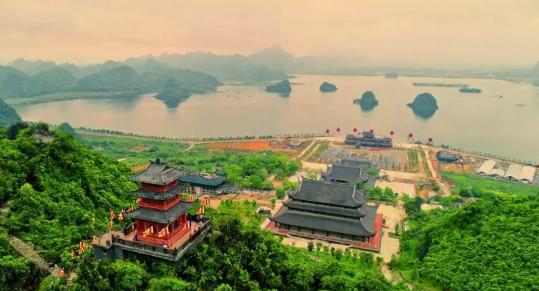 Ấn tượng nhất phải kể đến Chùa Tam Chúc - một nơi mà ngay từ khi đặt chân đến, bạn sẽ cảm nhận rõ sự “khác biệt về quy mô”. Không gian ở đây rộng đến mức bạn không thể đi vội. Mặt hồ trải dài, những dãy núi đá phía xa, các bậc thang nối tiếp nhau tạo nên một khung cảnh vừa hoành tráng vừa có phần tĩnh lặng. Đây không phải kiểu đẹp “chụp ảnh một góc là xong”, mà là nơi bạn cần thời gian để đi, để nhìn, và để cảm nhận hết cái rộng lớn của nó.