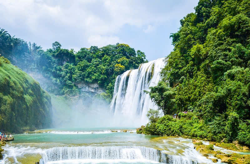 Thác Hoàng Quả Thụ là điểm đến nổi bật nhất của tỉnh. Đây là một trong những thác nước lớn nhất Trung Quốc, với chiều rộng lên tới hơn 80 m. Vào mùa nước lớn, dòng thác đổ xuống mạnh, tạo màn sương mù dày và âm thanh vang xa.