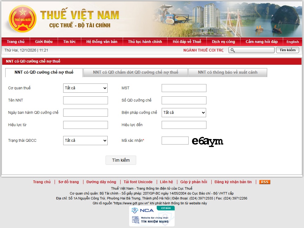 - Kết quả: Nếu không có thông tin, bạn không thuộc danh sách bị công khai cưỡng chế tại thời điểm tra cứu. Nếu có thông tin, xử lý nghĩa vụ thuế theo hướng dẫn.