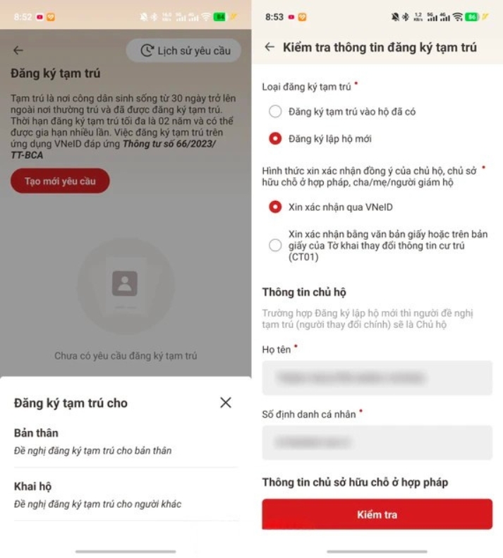 Các bước đăng ký tạm trú trên ứng dụng VNeID