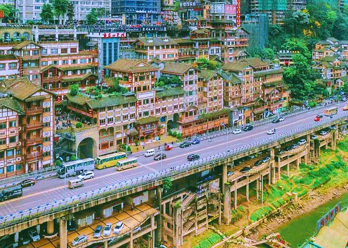 Điểm nổi bật nhất của Trùng Khánh chính là địa hình đô thị chồng lớp. Nhà cửa, đường sá, cầu vượt và hệ thống giao thông được xây dựng bám theo sườn núi, tạo nên cảm giác thành phố có nhiều “tầng” khác nhau.